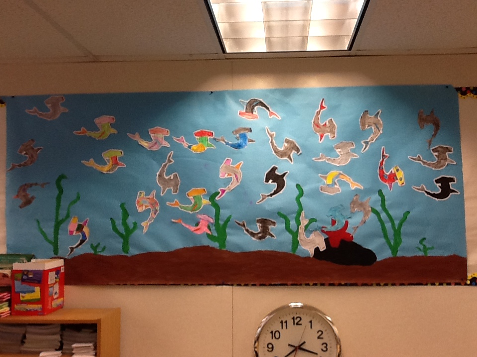 Another thing that I do is I have my class help me create a large ocean mural. I use a large piece of blue butcher paper; paint the ocean floor; add a rock, a starfish, and some ocean plants/seaweed. I do this ahead of time of course so that it will be dry and ready when I go to use it. Then on a day when I am focusing on sharks I have students get creative and make sharks to add to our mural. I actually got the print out from Learning Page.com many years ago, so I don't know if they still have it. I know that they have dolphins though. Here is the link http://www.learningpage.com/free_pages/galleries/oceans.html if you are interested.